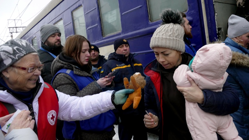 Evacuation train from frontline areas arrives at Mukachevo railway station