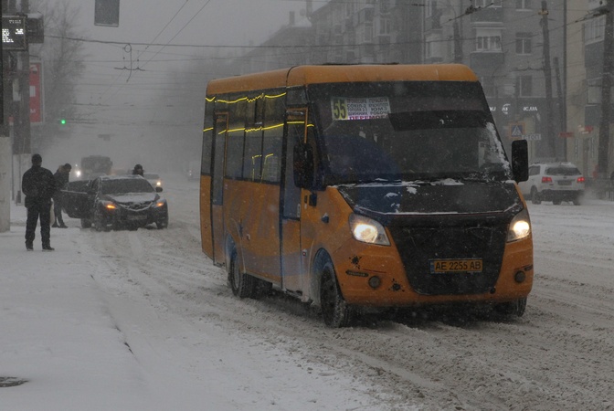 A shared taxi departs from a public transport stop along a snow-covered road in winter, Dnipro, Ukraine, on January 11, 2026., Credit:Mykola Miakshykov / Avalon