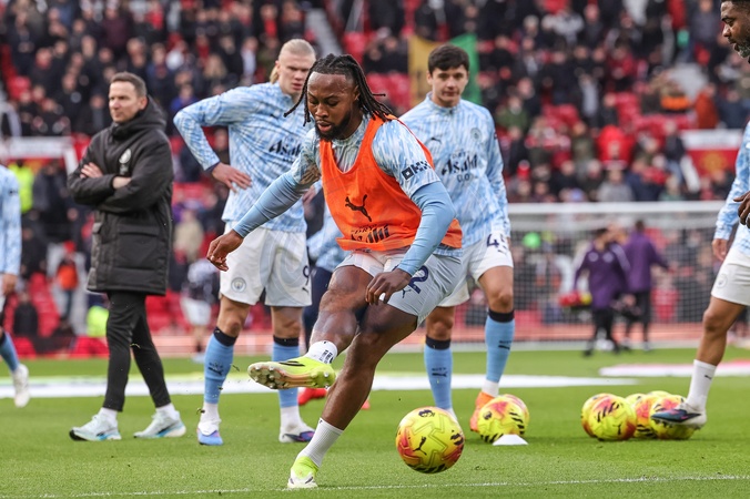 Antoine Semenyo of Manchester City in the pregame warmup session during the Premier League match Manchester United vs Manchester City at Old Trafford, Manchester, United Kingdom, 17th January 2026, Credit:Mark Cosgrove/News Images / Avalon