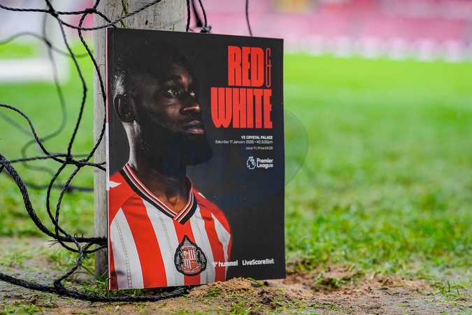 Lutsharel Geertruida of Sunderland in the match day program during the Premier League match Sunderland vs Crystal Palace at Stadium Of Light, Sunderland, United Kingdom, 17th January 2026, Credit:Maynard Manyowa/News Images / Avalon