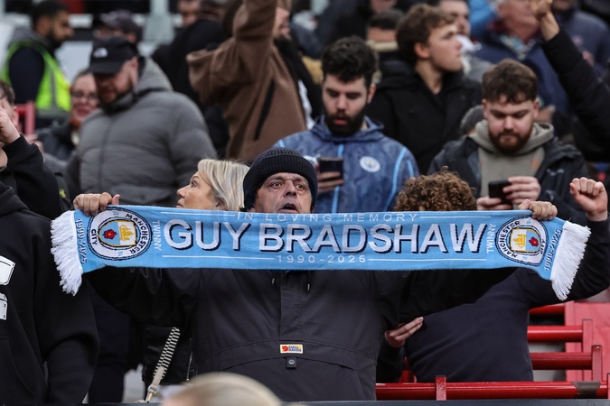 Man City fans holds up a scarf during the Premier League match Manchester United vs Manchester City at Old Trafford, Manchester, United Kingdom, 17th January 2026, Credit:Mark Cosgrove/News Images / Avalon