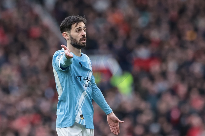 Bernardo Silva of Manchester City gives his team instructions during the Premier League match Manchester United vs Manchester City at Old Trafford, Manchester, United Kingdom, 17th January 2026, Credit:Mark Cosgrove/News Images / Avalon