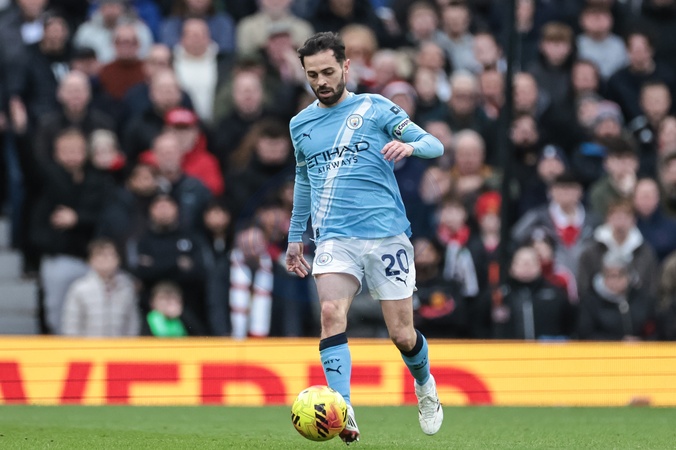 Bernardo Silva of Manchester City with the ball during the Premier League match Manchester United vs Manchester City at Old Trafford, Manchester, United Kingdom, 17th January 2026, Credit:Mark Cosgrove/News Images / Avalon
