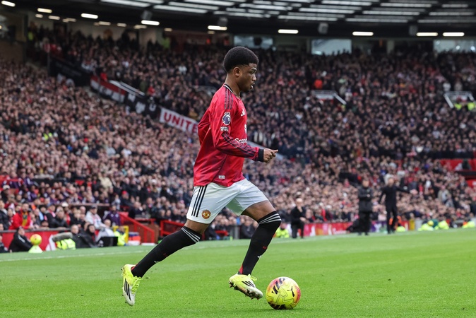 Amad Diallo of Manchester United breaks with the ball during the Premier League match Manchester United vs Manchester City at Old Trafford, Manchester, United Kingdom, 17th January 2026, Credit:Mark Cosgrove/News Images / Avalon