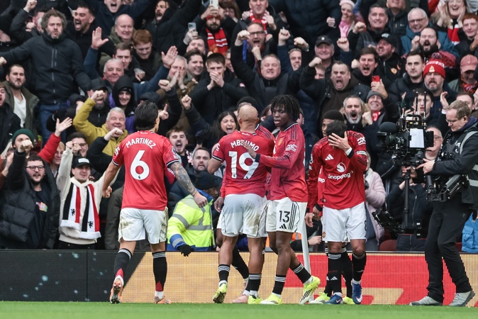 Bryan Mbeumo of Manchester United celebrates his goal to make it 1-0 during the Premier League match Manchester United vs Manchester City at Old Trafford, Manchester, United Kingdom, 17th January 2026, Credit:Mark Cosgrove/News Images / Avalon