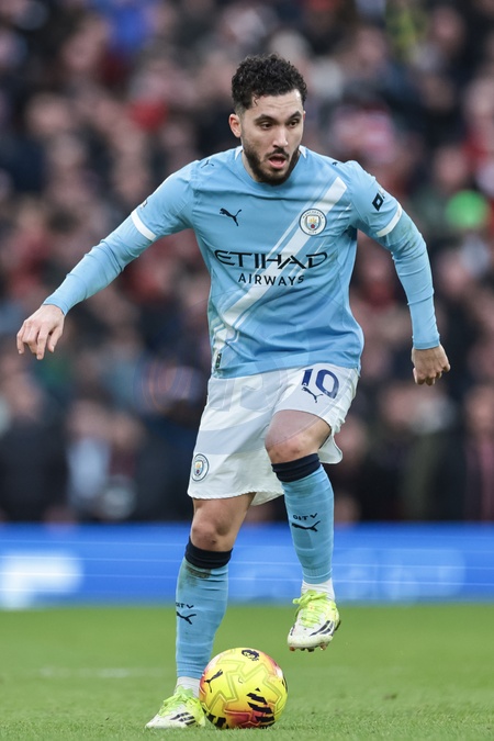 Rayan Cherki of Manchester City breaks with the ball during the Premier League match Manchester United vs Manchester City at Old Trafford, Manchester, United Kingdom, 17th January 2026, Credit:Mark Cosgrove/News Images / Avalon
