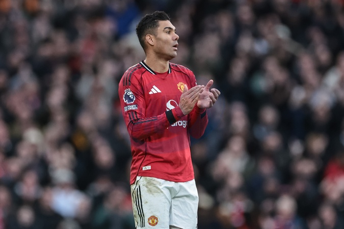 Casemiro of Manchester United applauds the fans after he's subbed off during the Premier League match Manchester United vs Manchester City at Old Trafford, Manchester, United Kingdom, 17th January 2026, Credit:Mark Cosgrove/News Images / Avalon