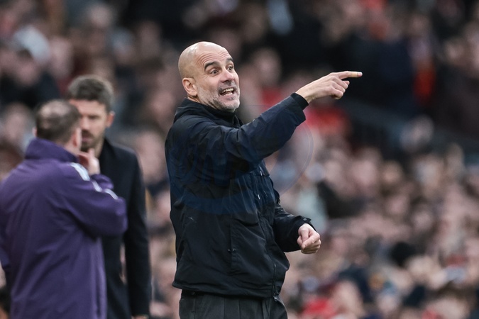 Pep Guardiola manager of Manchester City reacts in the technical area during the Premier League match Manchester United vs Manchester City at Old Trafford, Manchester, United Kingdom, 17th January 2026, Credit:Mark Cosgrove/News Images / Avalon