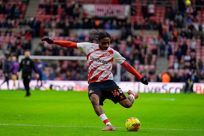 Romaine Mundle of Sunderland in the pregame warmup session during the Premier League match Sunderland vs Crystal Palace at Stadium Of Light, Sunderland, United Kingdom, 17th January 2026, Credit:Maynard Manyowa/News Images / Avalon