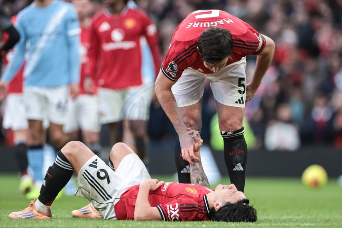 Harry Maguire of Manchester United shakes hands with Lisandro Martinez of Manchester United after they win 2-0 during the Premier League match Manchester United vs Manchester City at Old Trafford, Manchester, United Kingdom, 17th January 2026, Credit:Mark Cosgrove/News Images / Avalon