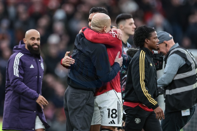 Pep Guardiola manager of Manchester City embraces Casemiro of Manchester United after the final whistle during the Premier League match Manchester United vs Manchester City at Old Trafford, Manchester, United Kingdom, 17th January 2026, Credit:Mark Cosgrove/News Images / Avalon