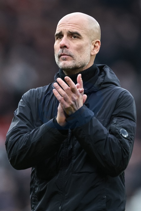 Pep Guardiola manager of Manchester City applauds the fans after the final whistle during the Premier League match Manchester United vs Manchester City at Old Trafford, Manchester, United Kingdom, 17th January 2026, Credit:Mark Cosgrove/News Images / Avalon
