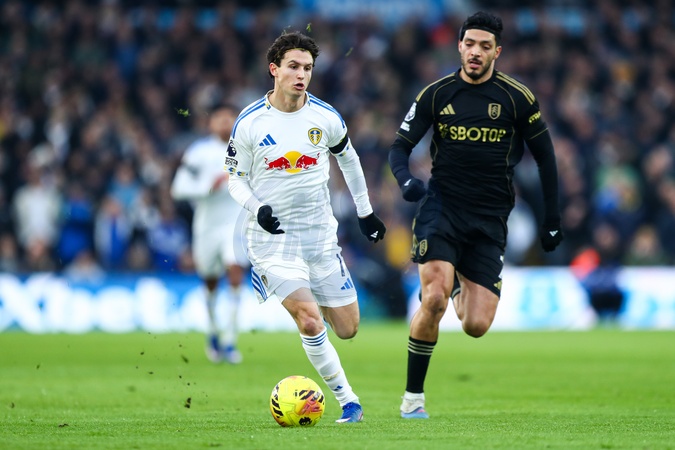 Brenden Aaronson of Leeds United dribbles ball forward during the Premier League match Leeds United vs Fulham at Elland Road, Leeds, United Kingdom, 17th January 2026, Credit:Jorge Horsted/News Images / Avalon