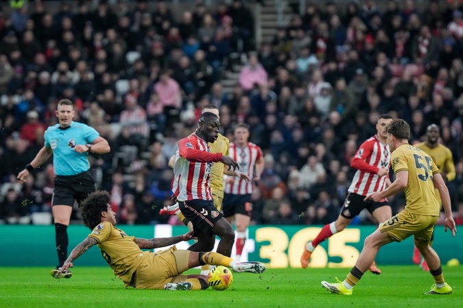 Brian Brobbey of Sunderland is tackled by Chris Richards of Crystal Palace during the Premier League match Sunderland vs Crystal Palace at Stadium Of Light, Sunderland, United Kingdom, 17th January 2026, Credit:Maynard Manyowa/News Images / Avalon