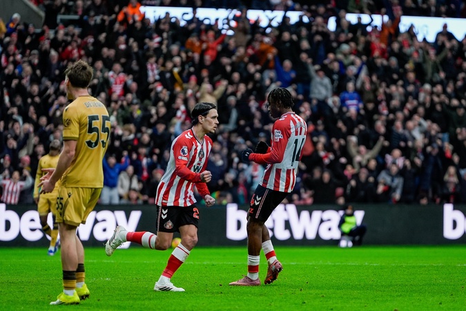 Enzo Le Fee of Sunderland celebrates his goal to make it 1-1 during the Premier League match Sunderland vs Crystal Palace at Stadium Of Light, Sunderland, United Kingdom, 17th January 2026, Credit:Maynard Manyowa/News Images / Avalon