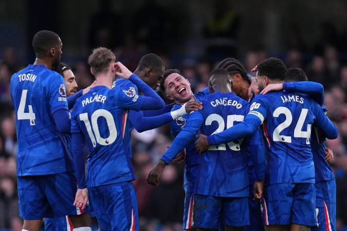 Enzo Fernández of Chelsea laughs as Chelsea players celebrate 1-0 lead during the Premier League match Chelsea vs Brentford at Stamford Bridge, London, United Kingdom, 17th January 2026, Credit:Harvey Murphy/News Images / Avalon