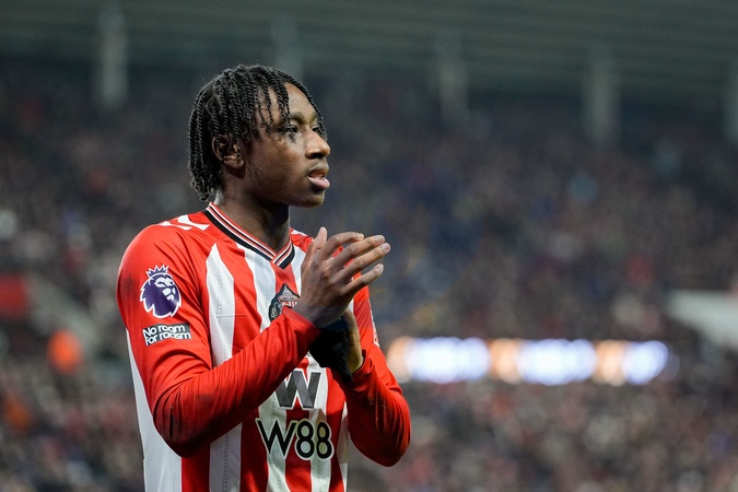 Romaine Mundle of Sunderland applauds the fans after being substituted during the Premier League match Sunderland vs Crystal Palace at Stadium Of Light, Sunderland, United Kingdom, 17th January 2026, Credit:Maynard Manyowa/News Images / Avalon