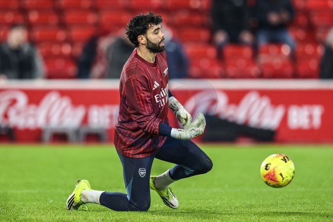 Arsenal goalkeeper David Raya in the pregame warmup session during the Premier League match Nottingham Forest vs Arsenal at City Ground, Nottingham, United Kingdom, 17th January 2026, Credit:Ae Cosgrove/News Images / Avalon