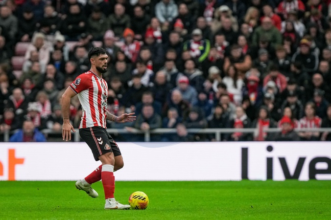Omar Alderete of Sunderland passes the ball during the Premier League match Sunderland vs Crystal Palace at Stadium Of Light, Sunderland, United Kingdom, 17th January 2026, Credit:Maynard Manyowa/News Images / Avalon