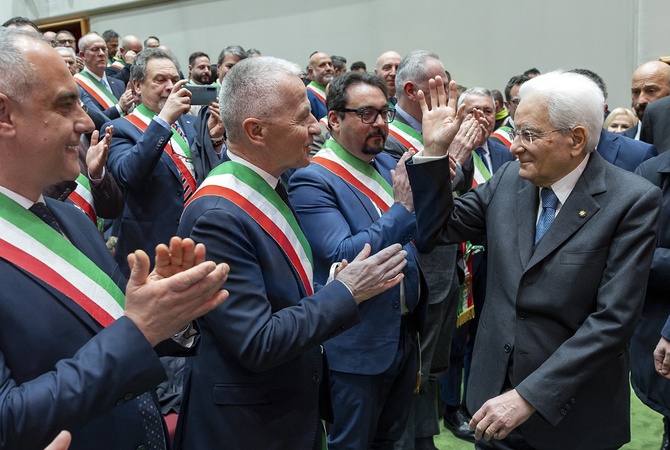 President Sergio Mattarella, at the end of the inauguration ceremony for L'Aquila, Italian Capital of Culture 2026, received greetings from the Mayors of the province of L'Aquila, today, January 17, 2026. L'Aquila, Italy 17 January 2026, Credit:Paul Giandotti / Avalon