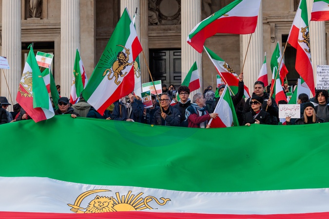 Trafalgar Square, London, UK. 17th January 2026.Thousands of Iranians and supporters lead the march from Trafalgar Square to the Iranian Embassy in protest of the mass killings of unarmed protesters in Iran. The now worldwide protests are calling for the end of the Islamic Republic and return of exiled Crown Prince Reza Pahlavi, the last Shah's eldest son., Credit:Photo by Amanda Rose / Avalon