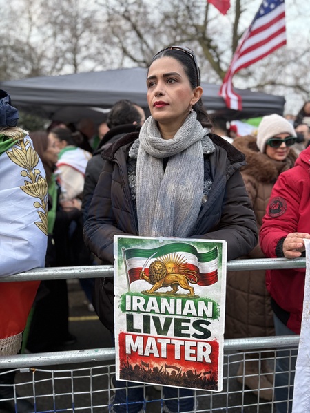 Iranian opposition supporters protest outside Iranian Embassy in London