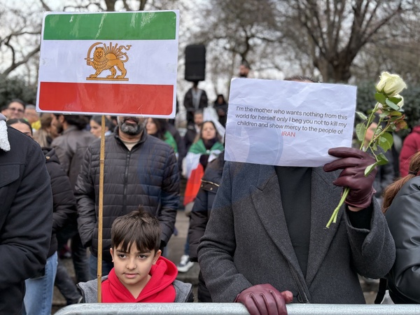 Iranian opposition supporters protest outside Iranian Embassy in London