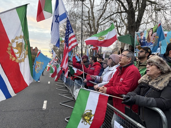 Iranian opposition supporters protest outside Iranian Embassy in London