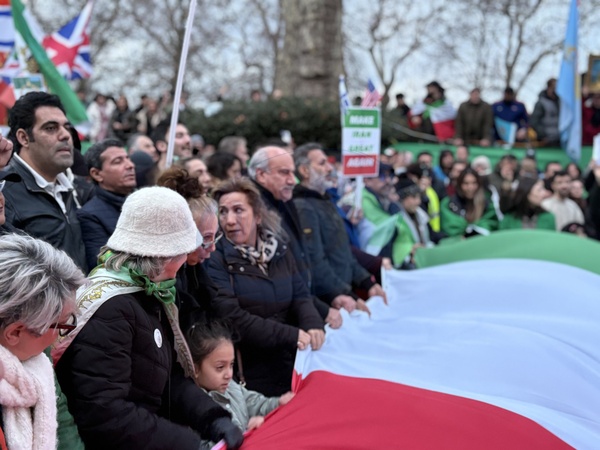 Iranian opposition supporters protest outside Iranian Embassy in London