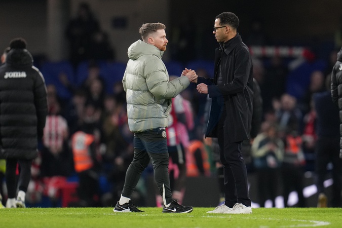Liam Rosenior manager of Chelsea and Calum McFarlane caretaker manager of Chelsea at full time during the Premier League match Chelsea vs Brentford at Stamford Bridge, London, United Kingdom, 17th January 2026, Credit:Harvey Murphy/News Images / Avalon