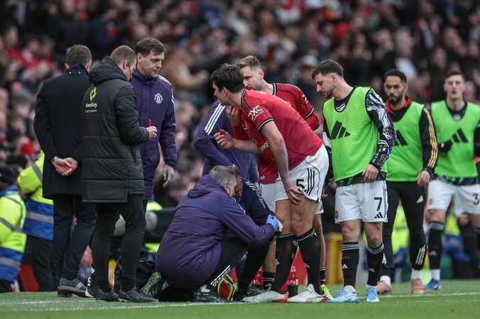 Harry Maguire of Manchester United receives treatment during the Premier League match Manchester United vs Manchester City at Old Trafford, Manchester, United Kingdom, 17th January 2026, Credit:Mark Cosgrove/News Images / Avalon