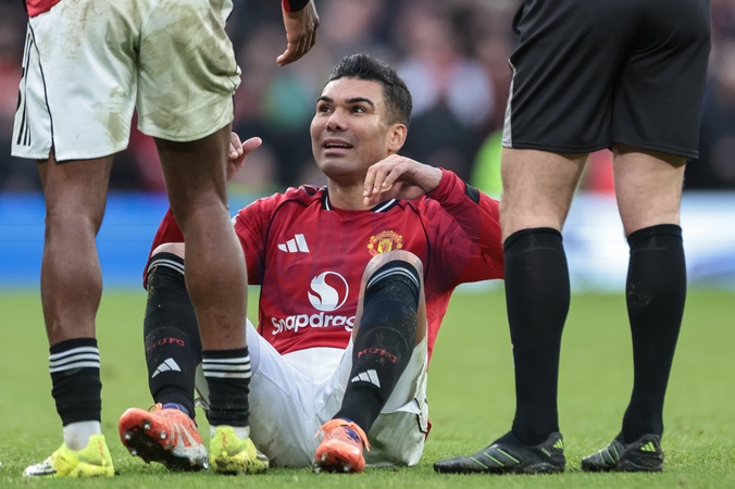 Casemiro of Manchester United on the floor after taking a knock during the Premier League match Manchester United vs Manchester City at Old Trafford, Manchester, United Kingdom, 17th January 2026, Credit:Mark Cosgrove/News Images / Avalon
