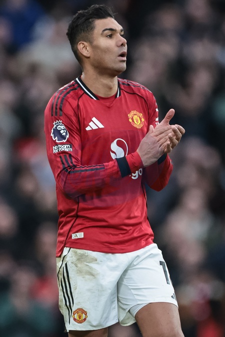 Casemiro of Manchester United applauds the fans during the Premier League match Manchester United vs Manchester City at Old Trafford, Manchester, United Kingdom, 17th January 2026, Credit:Mark Cosgrove/News Images / Avalon
