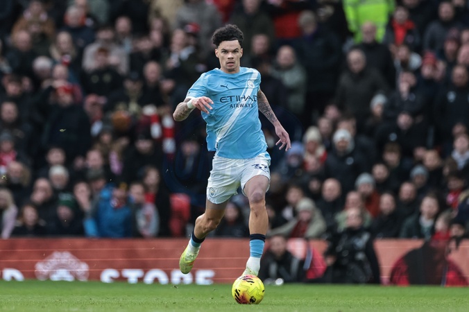 Nico O'Reilly of Manchester City breaks with the ball during the Premier League match Manchester United vs Manchester City at Old Trafford, Manchester, United Kingdom, 17th January 2026, Credit:Mark Cosgrove/News Images / Avalon