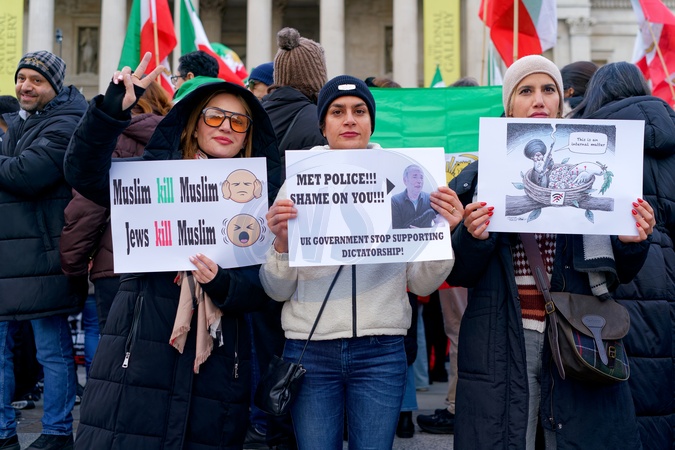 Free Iran protest. Trafalgar Square to Iranian Embassy. 17th January 2026.