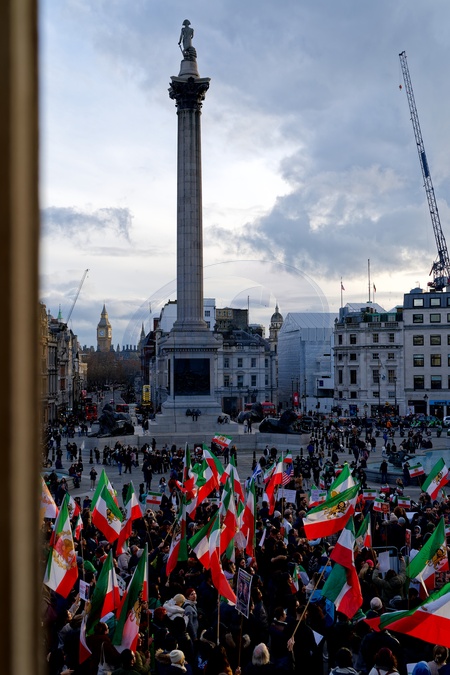 Free Iran protest. Trafalgar Square to Iranian Embassy. 17th January 2026.
