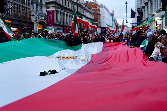 Free Iran protest. Trafalgar Square to Iranian Embassy. 17th January 2026.