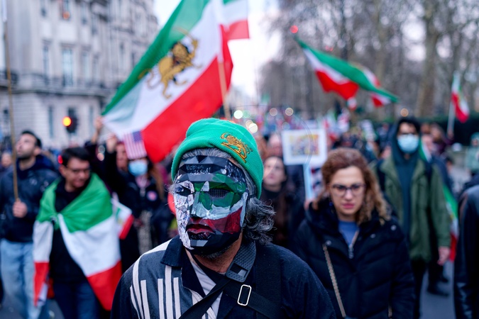 Around 1200 protested met at Trafalgar Square in front of the National Gallery and then marched to the Iranian embassy., Credit:Aldo Ciarrocchi / Avalon
