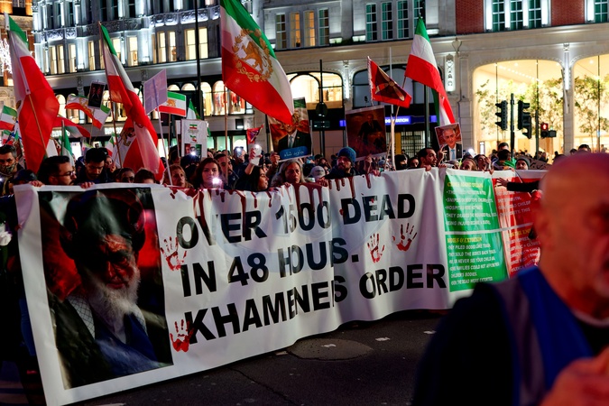 Free Iran protest. Trafalgar Square to Iranian Embassy. 17th January 2026.