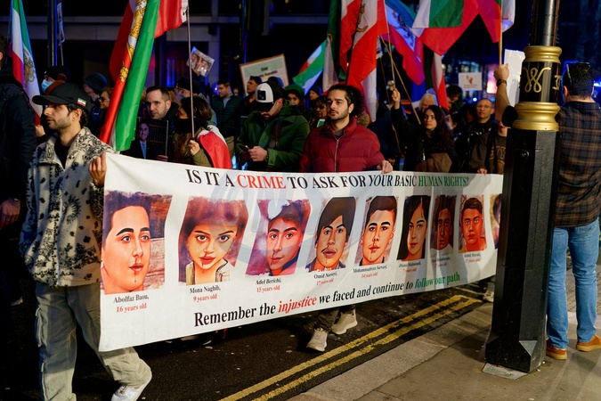 Free Iran protest. Trafalgar Square to Iranian Embassy. 17th January 2026.