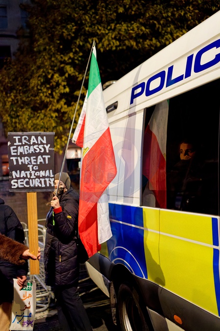 Free Iran protest. Trafalgar Square to Iranian Embassy. 17th January 2026.