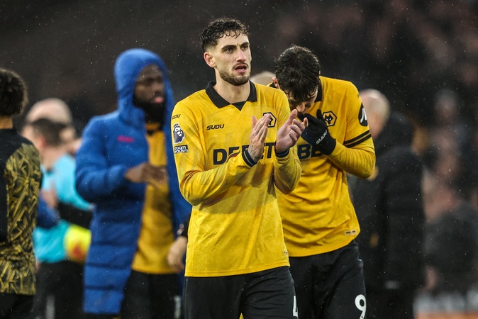 Santiago Bueno of Wolverhampton Wanderers applauds the fans after the game during the Premier League match Wolverhampton Wanderers vs Newcastle United at Molineux, Wolverhampton, United Kingdom, 18th January 2026, Credit:Ae Cosgrove/News Images / Avalon