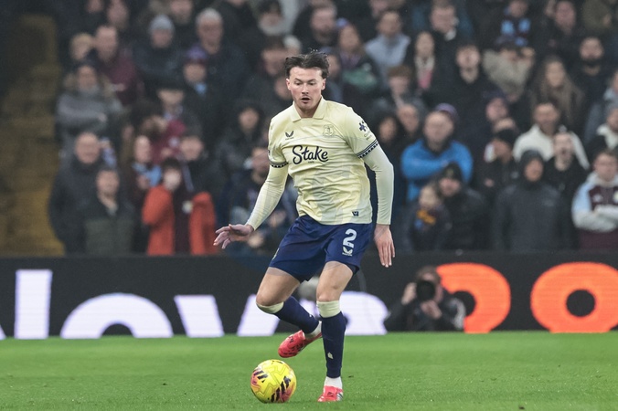 Nathan Patterson of Everton passes the ball during the Premier League match Aston Villa vs Everton at Villa Park, Birmingham, United Kingdom, 18th January 2026, Credit:Mark Cosgrove/News Images / Avalon