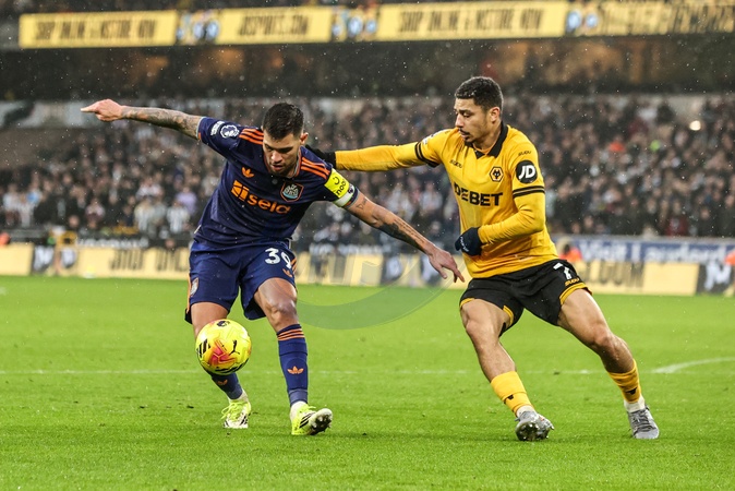 Bruno Guimaraes of Newcastle United and Andre of Wolverhampton Wanderers battle for the ball during the Premier League match Wolverhampton Wanderers vs Newcastle United at Molineux, Wolverhampton, United Kingdom, 18th January 2026, Credit:Ae Cosgrove/News Images / Avalon