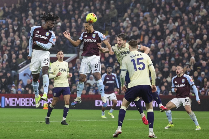 Youri Tielemans of Aston Villa heads on goal during the Premier League match Aston Villa vs Everton at Villa Park, Birmingham, United Kingdom, 18th January 2026, Credit:Mark Cosgrove/News Images / Avalon