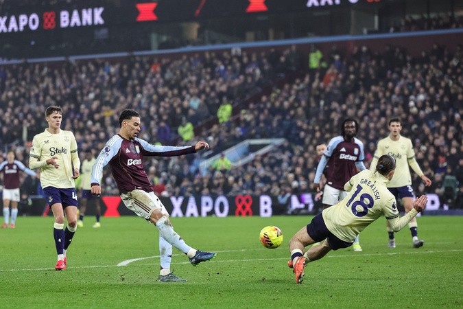 Morgan Rogers of Aston Villa shoots on goal during the Premier League match Aston Villa vs Everton at Villa Park, Birmingham, United Kingdom, 18th January 2026, Credit:Mark Cosgrove/News Images / Avalon