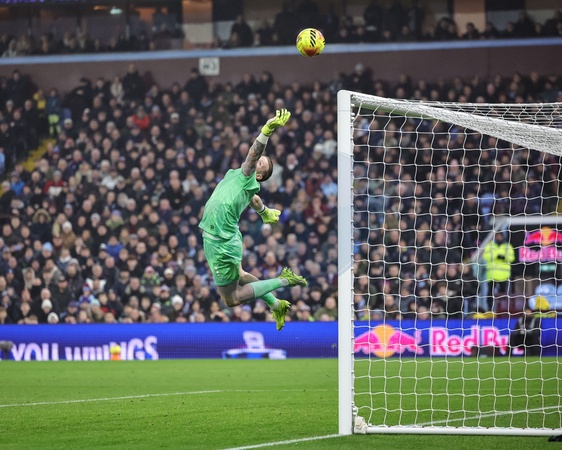 Everton goalkeeper Jordan Pickford makes a fingertip save during the Premier League match Aston Villa vs Everton at Villa Park, Birmingham, United Kingdom, 18th January 2026, Credit:Mark Cosgrove/News Images / Avalon