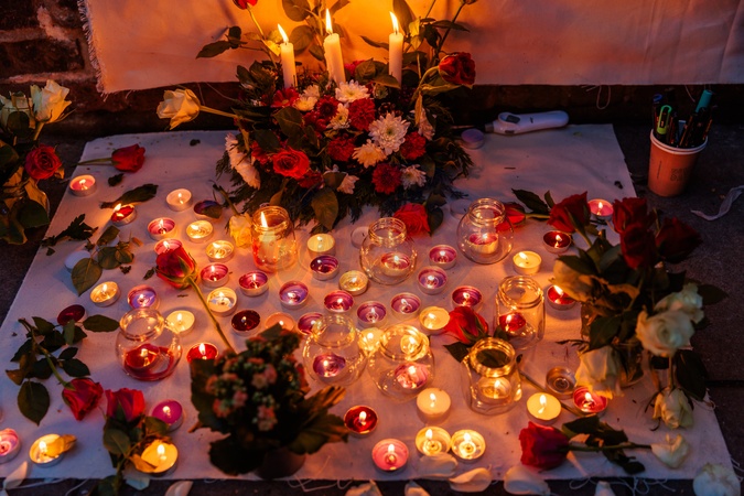 Iranian Embassy, London, UK. 18th January 2026.Thousands of Iranians continue to gather in front of the Embassy of the Islamic Republic of Iran, in protest of the reported violence, mass killings and arrests of the protesters in Iran and show support for the return of Crown Prince Reza Pahlavi.A memorial with lit candles and flowers in honour of the activists killed in the quest for freedom., Credit:Photo by Amanda Rose / Avalon
