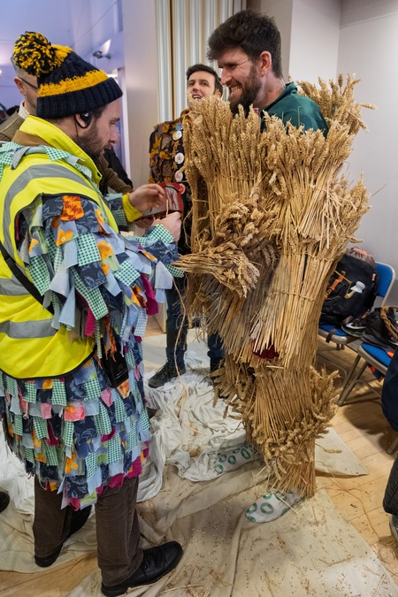 Preparing the outfit for the Straw Bear festival, this years dancer is Christain Cornell.Whittlesey, Cambridgeshire. United Kingdom. 17 January 2026, Credit:Mark Fairhurst / Avalon