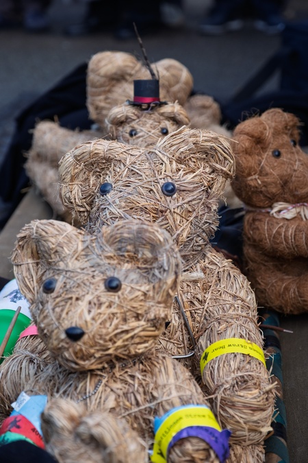 "Old Glory" morris dancers perform at Whittlesea straw bear festival,held every January in the little town of Whittlesey / Whittlesea in Cambridgeshire, near Peterborough, UK. Here a straw bear parades and dances through the streets along with various Mo